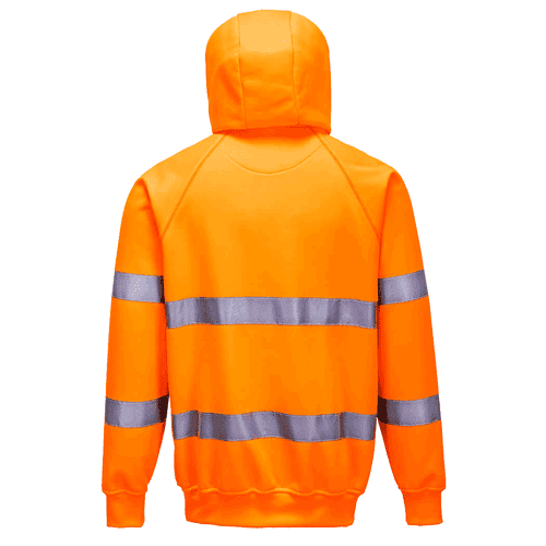 Sweatshirt met verstelbare capuchon van gebreid doek met geborstelde achterzijde, geribde manchetten voor warmte en comfort en gebreide zoom voor een goede pasvorm. Met Kangaroo zak aan de voorzijde, één zak voor veilige opslag en reflecterende striping voor een betere zichtbaarheid. UV bestendig. Gecertificeerd volgens EN ISO 20471 klasse 3 en RIS 3279-TOM. Materiaal: 65% polyester /35% katoen. Gewicht: 300 g/m².