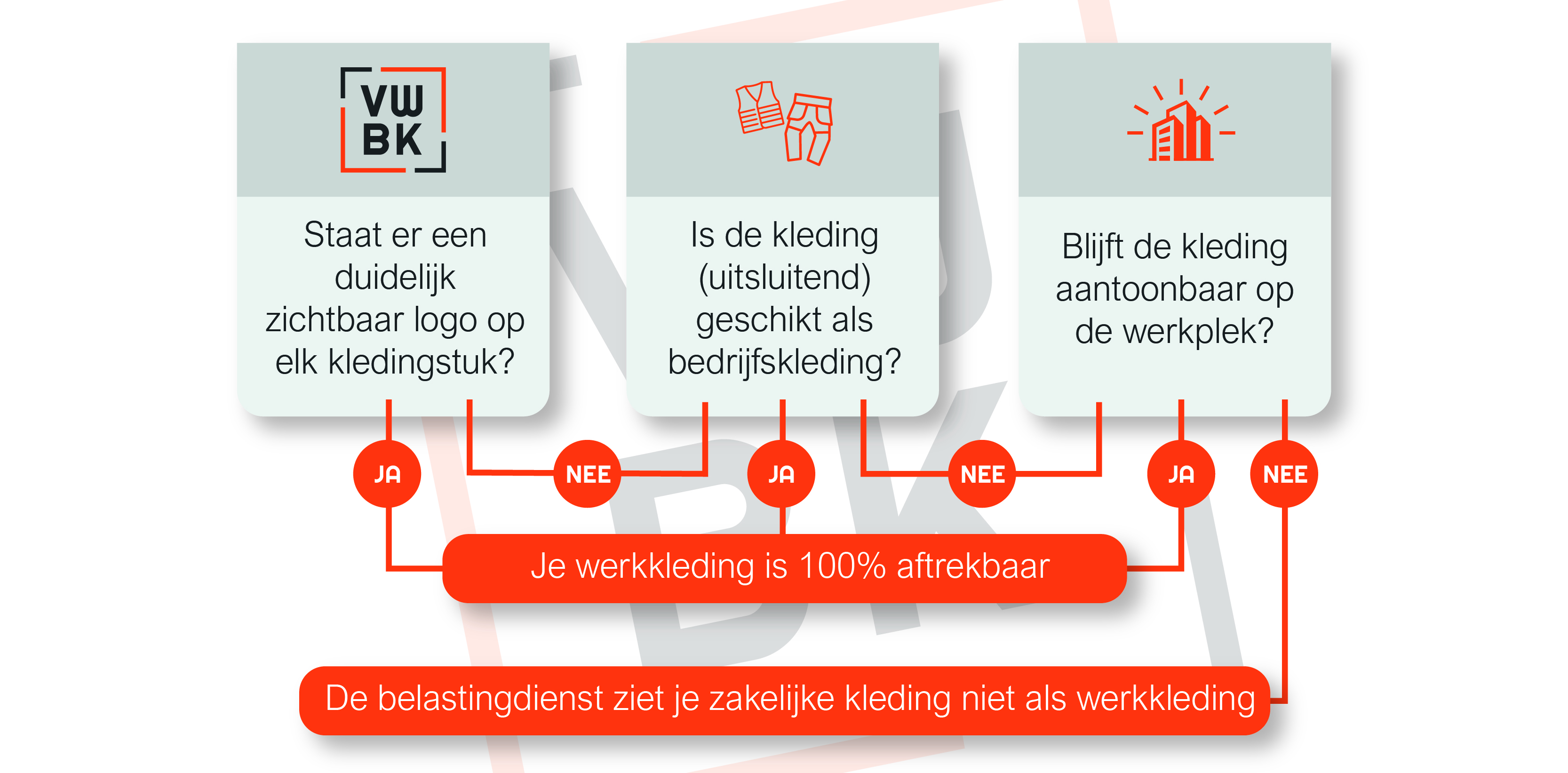 Om misverstanden te voorkomen, zetten we de regels hier even voor je onder elkaar. Voldoe je aan één van de volgende voorwaarden, dan is je werkkleding 100% aftrekbaar: