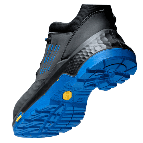 Laag model. Robuuste werkschoenen, lichtgewicht. Duurzame schoenen welke vrij zijn van metalen. Uitgevoerd met Vibram Ecostep Pro buitenzool.