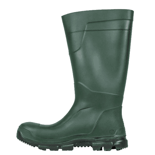 Veiligheidslaars met gecertificeerde stalen neus en tussenzool, EN ISO 20345:2011. Voldoet aan de antislipnorm SRC. Sterke en flexibele laars met indicator voor loopvlakslijtage van de buitenzool. Kleur: groen.