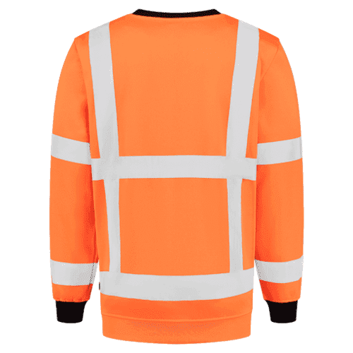 Model: 303001. Deze sweater is uitgevoerd conform de richtlijnen van Rijkswaterstaat. Comfortabel model. De binnenzijde is opgeruwd, de eyelets onder de oksels zorgen voor extra ventilatie. De sweater heeft een hoge zichtbaarheid conform EN ISO 20471. De striping is op de sweater gestikt. Uitgevoerd met elastisch boord aan de onderzijde en de manchetten. Materiaal: 80% polyester / 20% katoen. Gewicht: 280g/m².