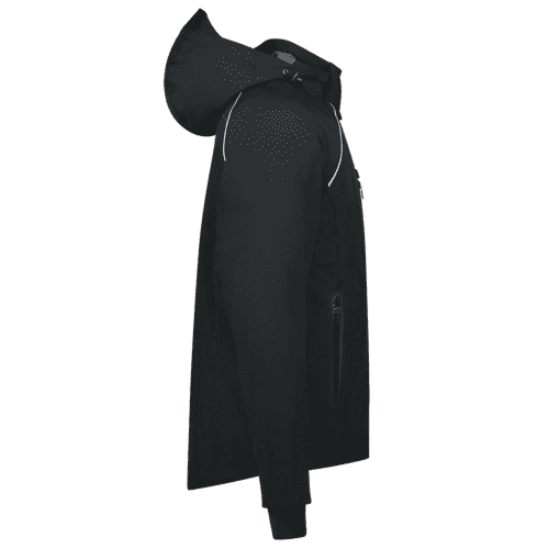 Model: 402018. Comfortabele, ademende en lichte werkjas. Uitgevoerd met afritsbare capuchon, reflective piping, YKK ritssluiting en tricot manchet met duimopening. Onder de armen zit een pit zip met luchtgaten. Ook de ritssluitingen in de armen (pit zip) vergroten het ademend vermogen van de jas. Getapete naden, wind- en waterdicht. Doormiddel van het koord aan de onderzijde kun je de jas naar wens verstellen. Dit type jas is EN 343 klasse 3/4 gecertificeerd. Materiaal: 100% polyester. Gewicht: 145g/m².