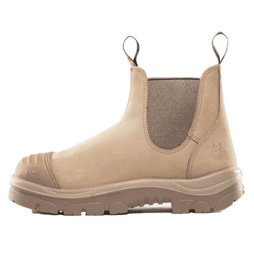 Half hoog model enkelaars met elastiek aan de zijkanten. Deze 145mm instapper is uitgevoerd een gestikte kruipneus, dubbel gestikt met nylondraad en stalen neus en voetbed. Tevens voorzien van het Steel Blue zoolsysteem PORON® met drie dichtheden voor een hoog comfort, schokabsoberende kussen en energieteruggave. En met antistatische thermoplastische urethaan (TPU) loopzool voor superieure slijtage-eigenschappen. Hittebestendig tot 130°C. Materiaal: waterbestendig Nubuck rundleder.