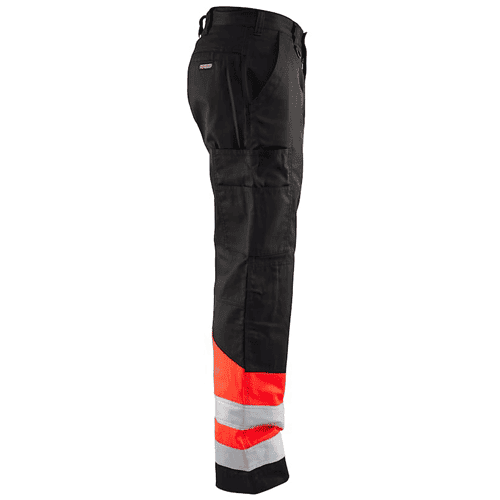 Licht van gewicht duurzame werkbroek uitgevoerd met 3 dubbel gestikte naden die voorzien in een grote scheurweerstand en hoge slijtvast baarheid. Waterafstotend en voorzien reflecterende strepen op de benen. Met ruime beenzakken, gulp met kunststof rits, lussen waarvan één D-ring, afneembare ID-kaarthouder en achterzakken. Beenzak met extra zak en pennenzak, beenzak met klep en plooi met pennenzak, extra zak, telefoonzak en ID-kaartzak. Kniebeschermerzakken aan binnenkant en met schuine zakken. De broek is gecertificeerd volgens EN ISO 20471 Klasse 1 (W) en EN 14404:2004+A1:2010 in combinatie met kniebeschermers 4027 en 4057. Materiaal: 65% polyester, 35% katoen. Gewicht: 240g/m².